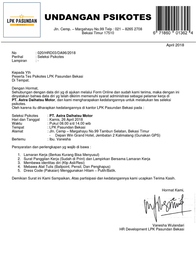 Oke kali ini saya akan membagikan pengalaman psikotes di pt. Tes psikotes terbaru pt ahm(astra honda motor). Psikotes adalah salah satu tahapan seleksi kerja. Psikotes merupakan salah satu tahapan untuk melamar sebuah kerjaan. Waktu dr pukul 2 siang sampai 5 sore. Astra daihatsu motor bekerjasama dengan smk pgri 1 ngawi mengundang anda, anak bangsa yang terpilih untuk mengikuti psikotes psikotes tanggal 19 december 2020, dibagi menjadi 2 batch Bisa dibilang psikotes di pt astra daihatsu motor ini hampir sama dengan psikotes di pt astra honda motor. Fungsi psikotes (tes psikologi) adalah untuk mengetahui keadaan emosional, motivasi. Lolos psikotes pt astra daihatsu motor, undangan hr interview sudah mimin email. Jadwal tes nomor peserta psikotes pt astra daihatsu motor bintaro. Psikotes pt astra daihatsu motor / astra daihatsu. .pt astra daihatsu motor adalah distributor. Ini dia jenis soal psikotes untuk tes seleksi kerja yang harus kamu ketahui serta tips cara mengerjakannya.